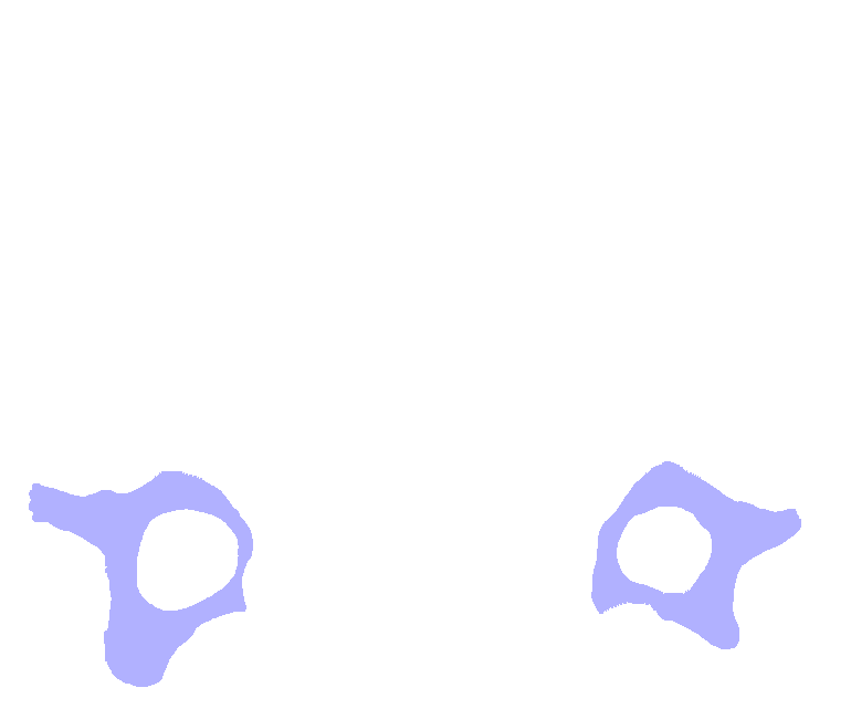 Note that cervical vertebrae are smaller than thoracic or lumbar vertebrae. All cervical vertebrae have 3 foramina, 1 vertebral foramen and 2 transverse foramina through which the vertebral artery and its accompanying vein and nerve pass. The spinous processes of C2 through C6 are often split into two parts (bifid). Using the following interactive images to help, locate these foramina on your specimen and label them on your worksheet.
