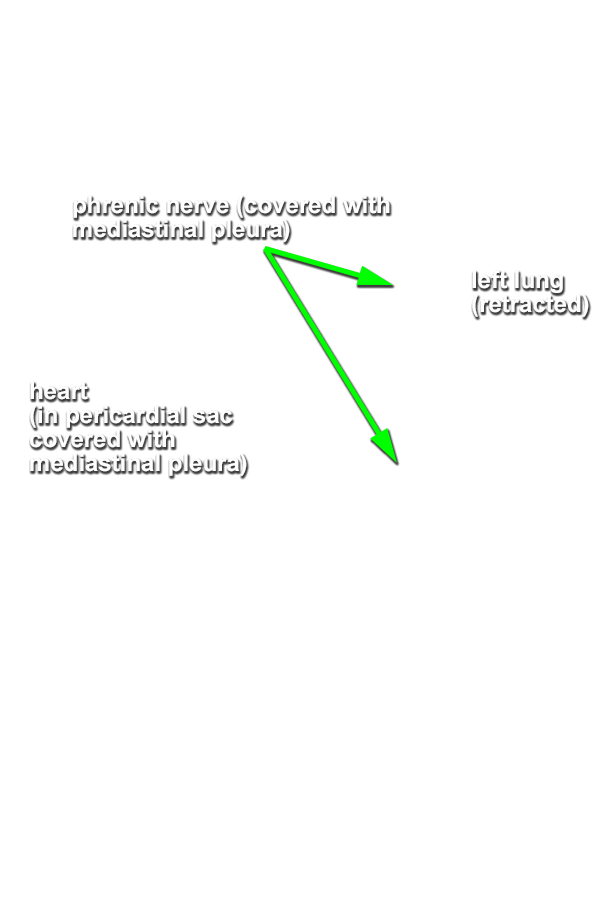 - Identify the phrenic nerve passing anterior to the root of the lung. You do not need to clean the phrenic nerve at this time.