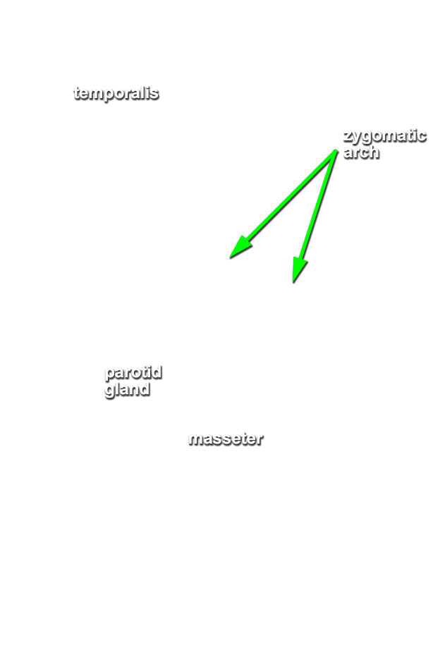 - (ON BOTH SIDES) Clean the superficial aspect of the masseter muscle by removing the fascia and parotid gland and duct. Leave at least one branch of the facial nerve dangling near the ear as you remove the parotid gland.