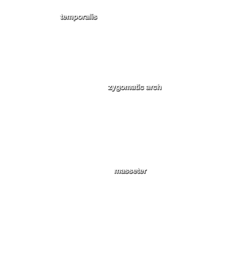 - (ON BOTH SIDES) Reflect the zygomatic arch and masseter muscle in the inferior direction towards the angle of the mandible. (G 7.41B;N 54; Gl 34.23) Leave the masseter attached to the angle of the mandible. As you reflect the masseter muscle, attempt to identify the masseteric nerve and artery near the mandibular notch.